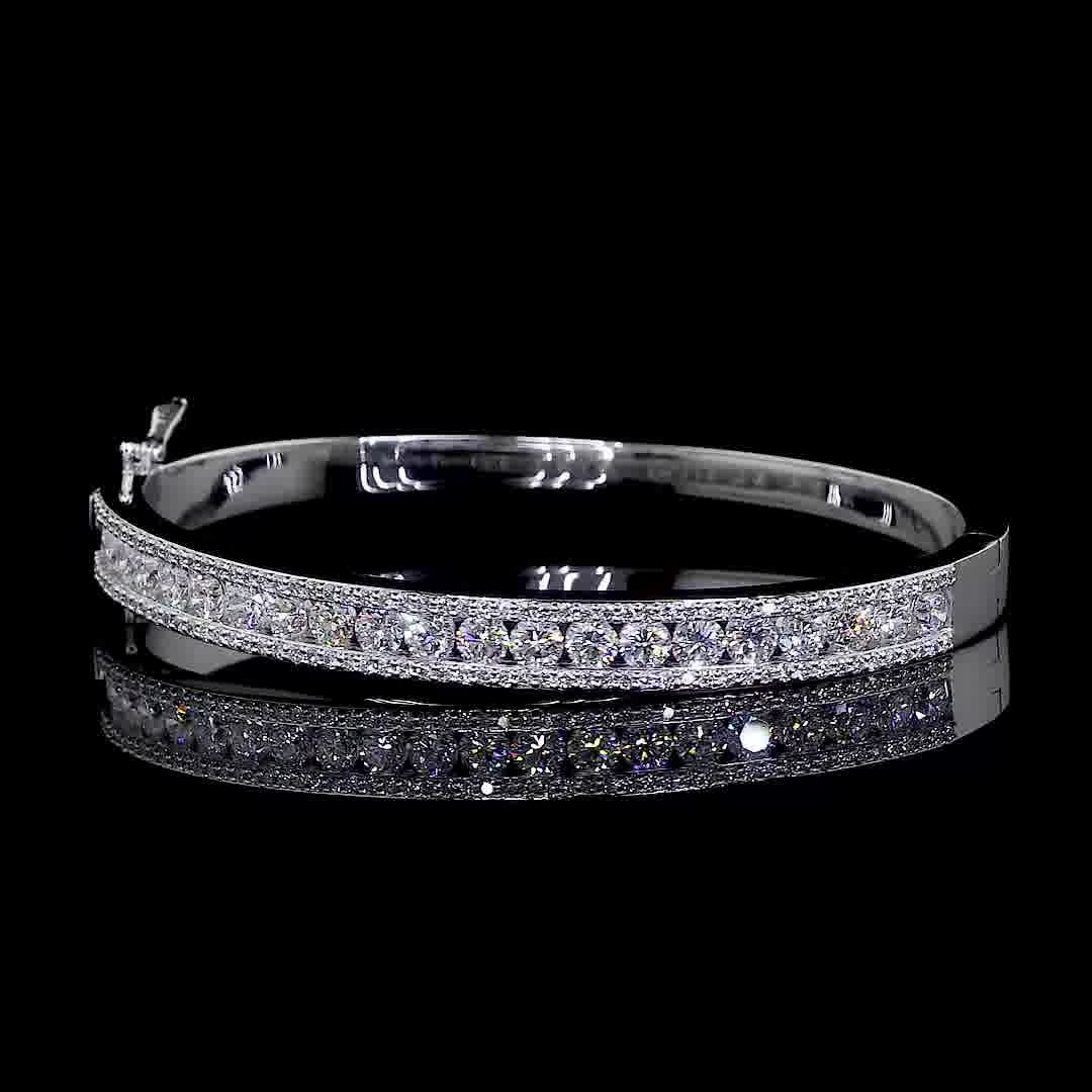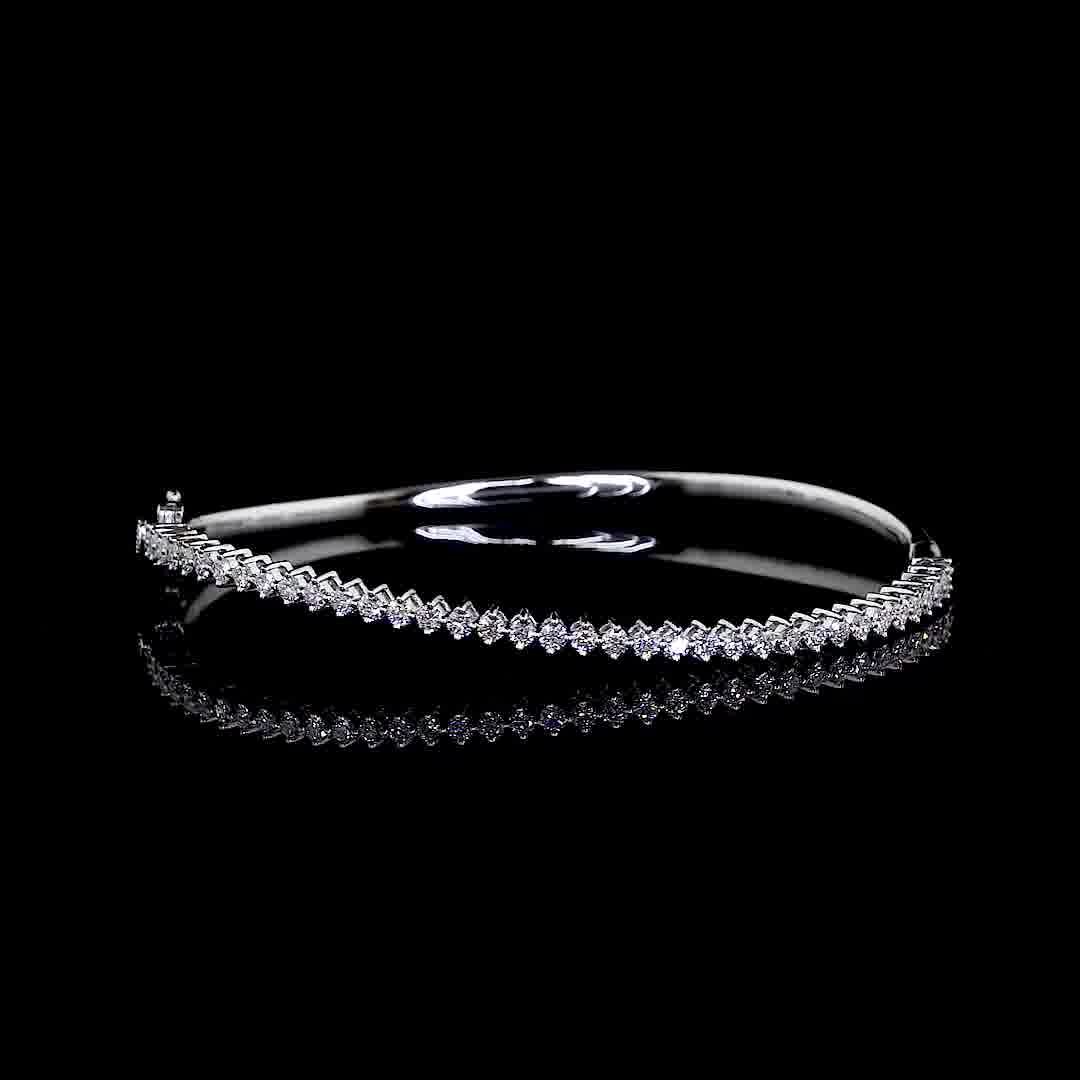 White Gold Hinged Bangle | Dynamic Alternating Diamond Design | Vega New York quantity