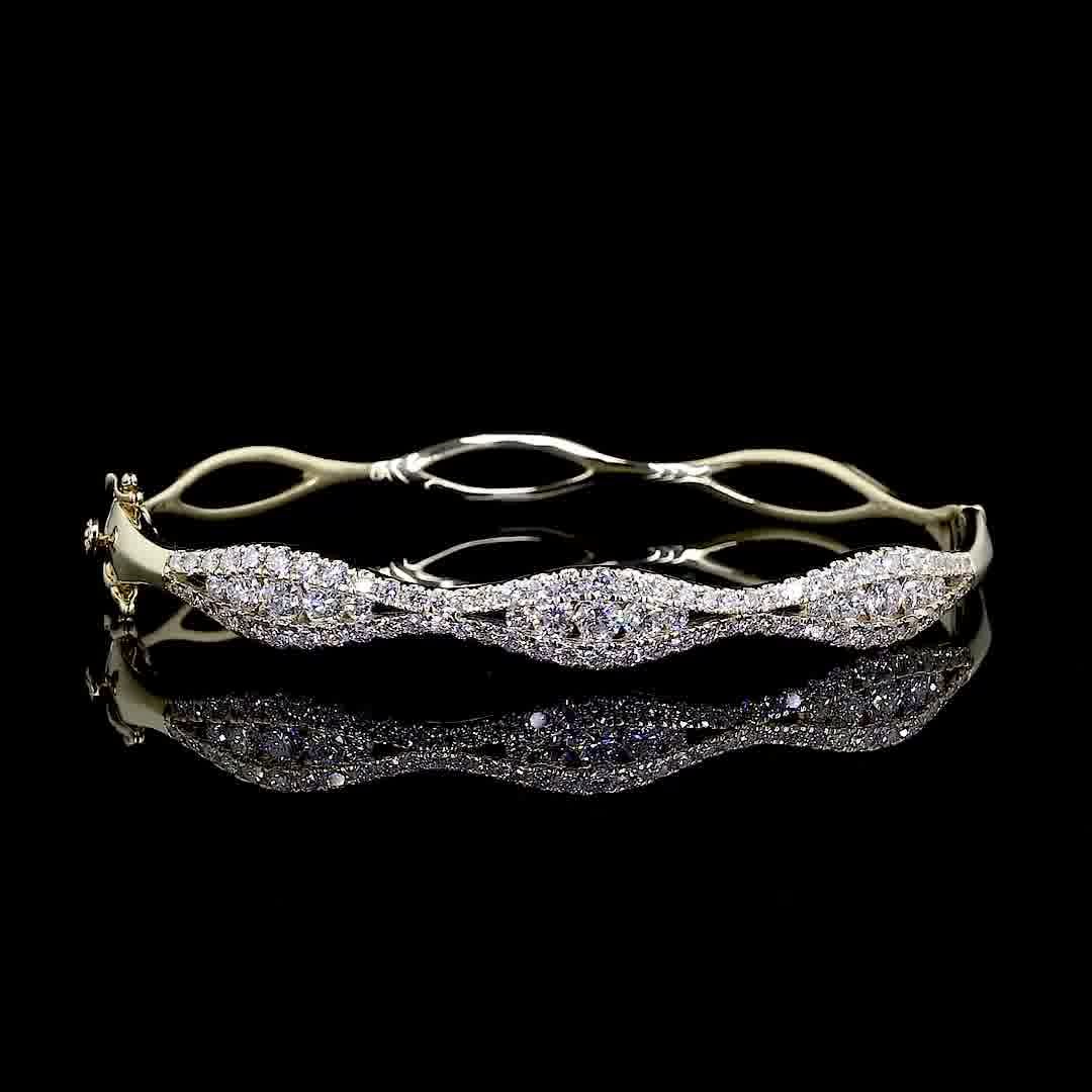 Women's Yellow Gold Hinged Bangle | Fancy Cut Diamonds with Halo quantity