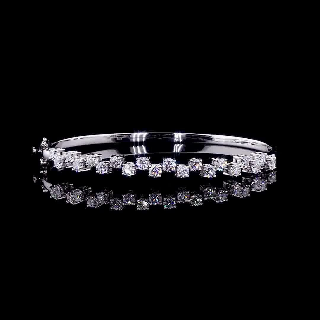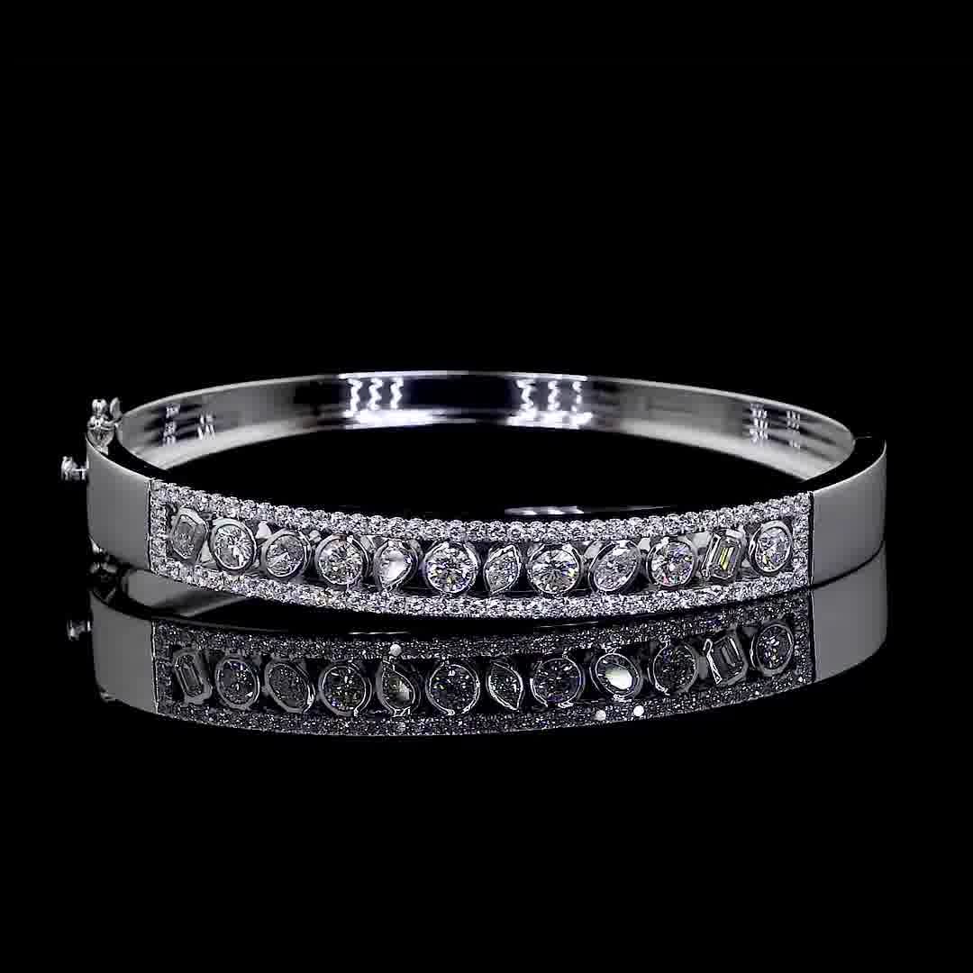 White Gold Hinged Bangle | Dynamic Alternating Diamond Design | Vega New York