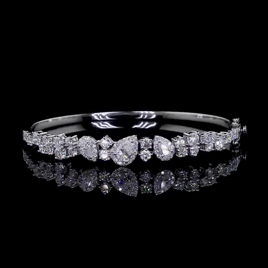 White Gold Statement Bangle | Multi-Cut Diamond Cluster Bracelet | Vega New York