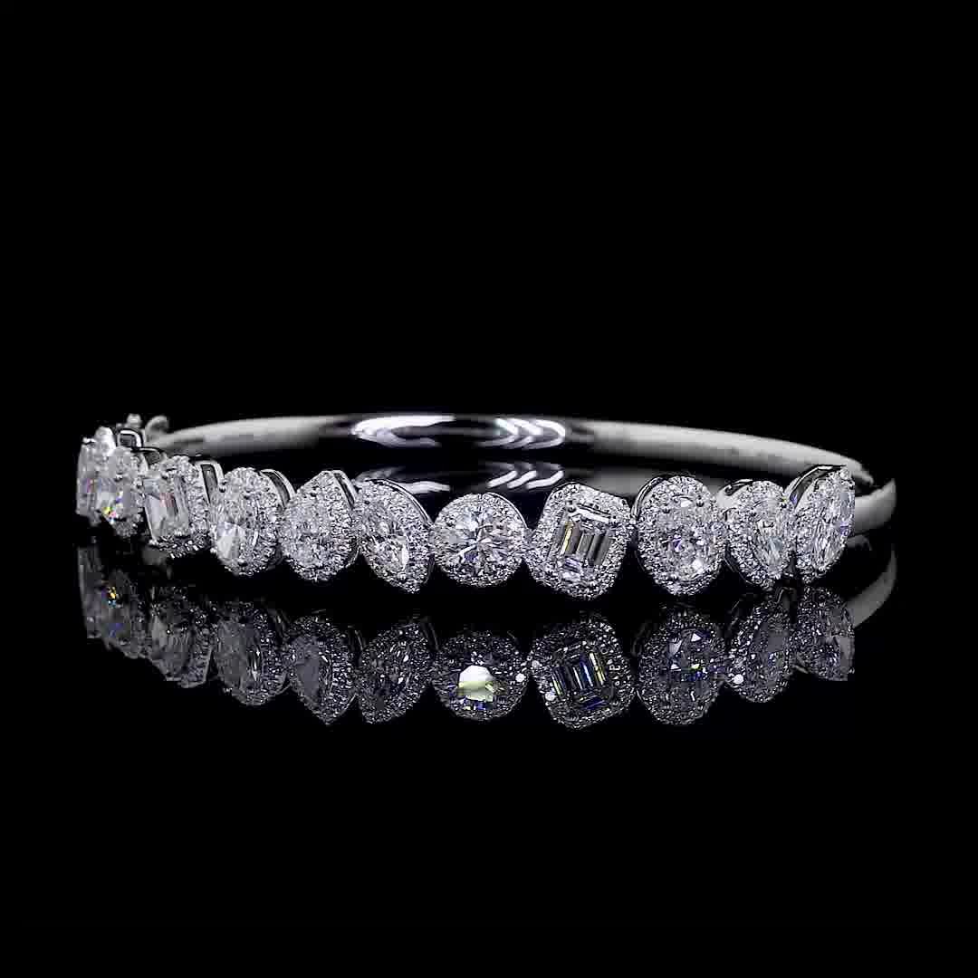 Luxury White Gold Bangle | Center Round Diamonds with Diamond Halo Borders | Vega New York