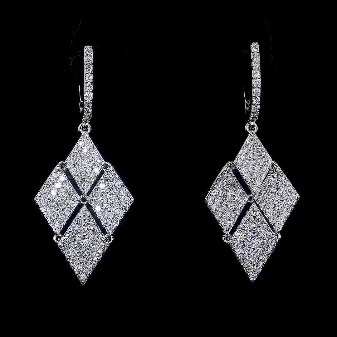 Pave Set Diamond Kite Shape Dangle Earrings