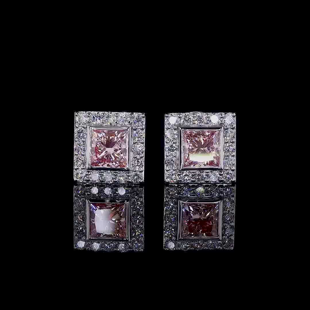 Pink Princess Cut Halo Stud Earrings