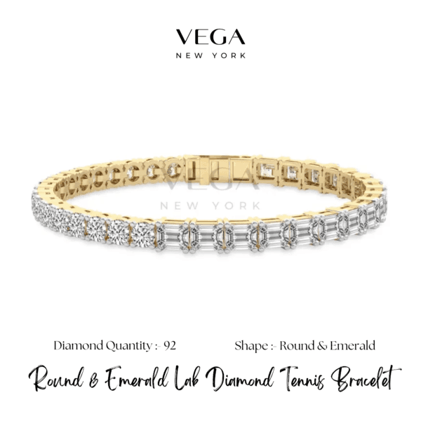 • Emerald and Round Cut Dual Diamond Tennis Bracelet