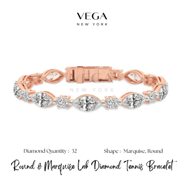 • Marquise Accented Lab Diamond Tennis Bracelet