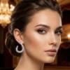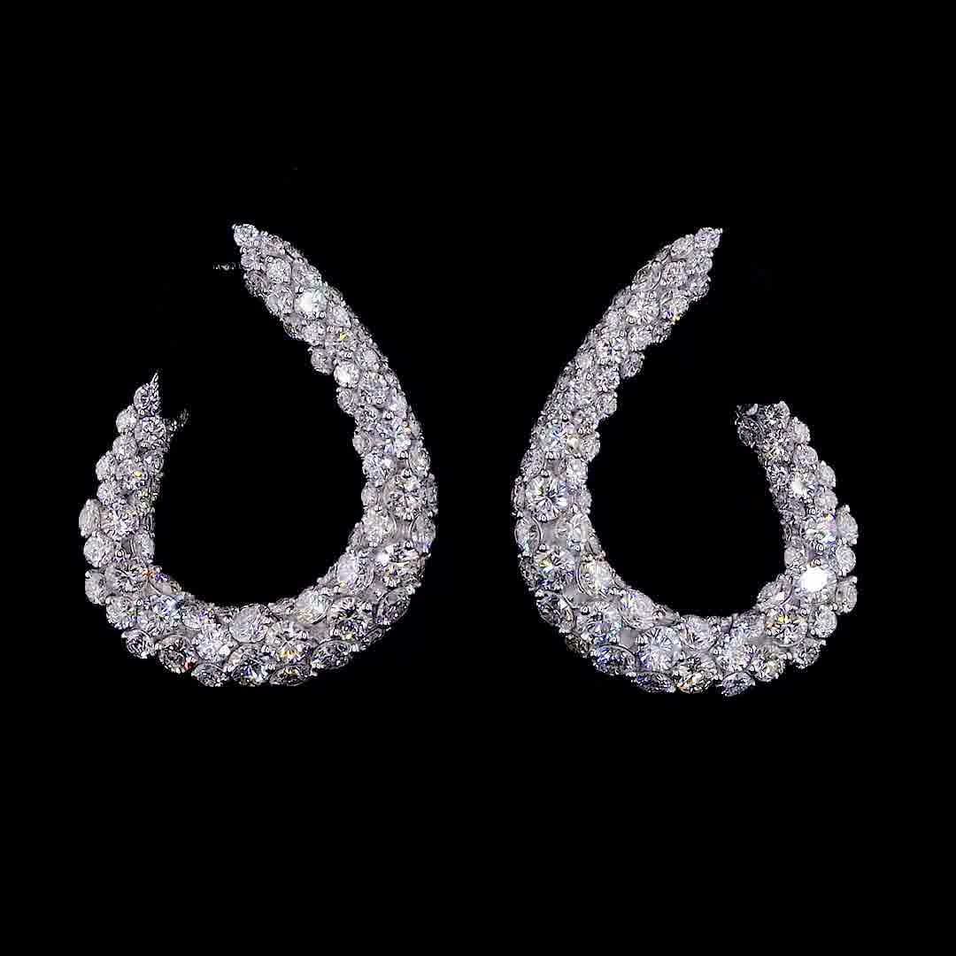 The Galaxy Pave C-Hoops Description: Turn up the volume on your jewelry game with these show-stopping C-hoops. Unlike delicate wires, these earrings feature a bold, wide silhouette completely encrusted with hundreds of shimmering round-cut stones. The curved design hugs the earlobe and tapers elegantly, creating a "wall of light" effect that is impossible to miss. Perfect for adding a touch of celebrity-style glamour to a cocktail dress or a power suit.