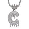 Crowned Initial Letter Diamond Drip Pendant