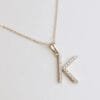 Celebrate individuality with this stunning Diamond Initial "K" Pendant, crafted in warm yellow gold. This pendant features a sleek and modern design, with a slim letter "K" encrusted in sparkling diamonds. The diamonds are set in a micro pavé setting, which provides a seamless sparkle along the pendant’s surface, highlighting each line of the letter.