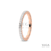 This exquisite women’s eternity band in polished white gold is adorned with two continuous rows of sparkling round-cut diamonds that encircle the entire band. The double-row design maximizes brilliance, creating an enchanting effect that shimmers from every angle.