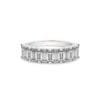 This timeless women’s band in luxurious yellow gold features a continuous line of dazzling emerald-cut diamonds, each prong-set to showcase their elongated facets and crisp, clean lines. The arrangement of the emerald-cut stones creates a sophisticated geometric look, offering a brilliant play of light and depth.
