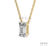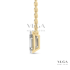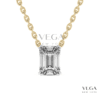 This striking pendant features a stunning emerald-cut diamond in a minimalist four-prong setting, allowing the natural beauty of the diamond to shine through. The elongated emerald cut offers a unique and elegant appeal with its mirror-like facets, exuding a refined and timeless charm.