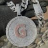 Step into the spotlight with our Custom G Iced Circle Pendant, where bold meets brilliance. This oversized pendant is dripping with lab-grown diamonds, with a pavé-set initial centerpiece that radiates in a two-tone design. The fully iced-out circular frame adds a sleek, statement-making finish that turns heads everywhere you go.