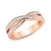 The men's ring features a sleek, intertwined design that wraps around the band, showcasing a refined and modern aesthetic. The women's ring enhances the infinity motif with two intertwined rows of pavé-set diamonds, adding a touch of sparkle and sophistication.