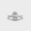 Celebrate your love with this breathtaking 2.42 Carat Oval Lab Grown Diamond Halo Engagement Ring. The oval-cut lab grown diamond sparkles with exceptional brilliance, surrounded by a shimmering halo that enhances its fire and radiance.