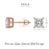 "These Princess-Cut Diamond Stud Earrings are a modern classic, combining sleek lines with sparkling elegance. Each earring features a single princess-cut diamond, set in a chic rose gold four-prong setting that emphasizes the diamond's clean edges and geometric brilliance. The screw-back design ensures secure and comfortable wear, making these earrings ideal for both everyday sophistication and special occasions.