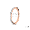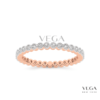 This delicate women’s eternity band in polished white gold features a graceful scalloped design, with round-cut diamonds encircling the entire band. Each diamond is prong-set to enhance its brilliance, creating a seamless row of sparkle that symbolizes endless beauty and commitment.