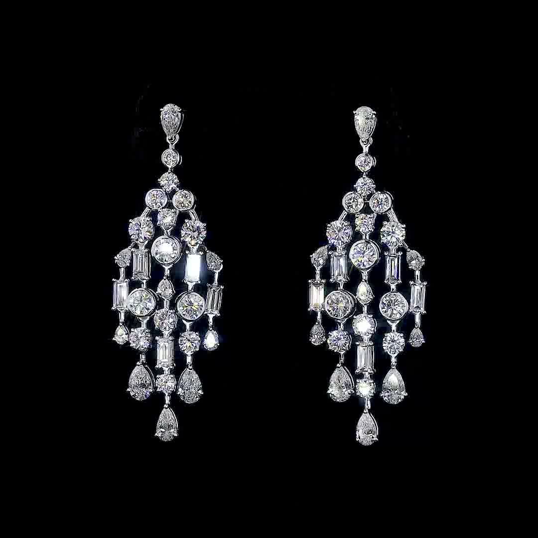 Elevate your evening attire with the breathtaking sparkle of the Aurora Cascade earrings. Designed for the woman who commands attention, these exquisite chandelier earrings feature a sophisticated symphony of diamond cuts.