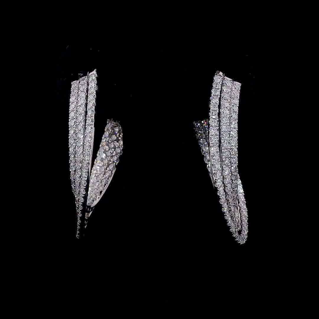 Triple Row Diamond Pave Hoop Earrings – Wide Split-Shank C-Hoops